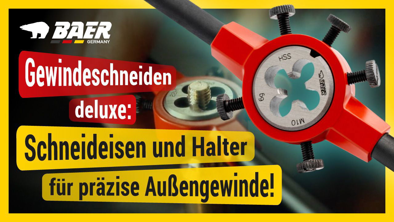 Le filiere BAER sono perfette per chi vuole tagliare filetti esterni. In pratica, questo utensile da taglio è cilindrico e presenta al suo interno - a seconda delle dimensioni - tre o più taglienti. I fori tra i taglienti ricevono i trucioli, li arrotolano e li scaricano. Le filiere vengono utilizzate per tagliare viti, dadi e barre filettate nell'uso quotidiano. Le filiere tonde sono cilindriche e vengono utilizzate per realizzare filettature esterne in un'unica operazione. Sull'involucro esterno della filiera tonda sono presenti quattro fori e una scanalatura che servono per fissare la filiera al portamateriali e ai portamateriali corrispondenti utilizzando delle viti di fissaggio. Le filettature esterne vengono tagliate a mano con la filiera. Per la contropunta di un tornio o per il mandrino di un trapano a colonna si utilizzano dei portamaschi speciali. Il rubinetto è realizzato in acciaio ad alta velocità HSS, che ha una maggiore resistenza ed è meno soggetto a rotture rispetto all'acciaio HSSE. L'acciaio HSS è anche un materiale popolare per la realizzazione di utensili sottoposti a forti sollecitazioni. Le filiere HSS possono essere utilizzate per acciai strutturali, acciai al carbonio e acciai automatici. È adatto anche per acciai da cementazione acciai da bonifica non legati con una resistenza fino a 750 N/mm². Acciaio fuso possono essere tagliate anche leghe di zinco, rame puro, rame basso legato e leghe di rame-stagno a corto taglio. Anche plastiche come POM, PVC ecc. È importante lubrificare l'utensile con olio da taglio o pasta da taglio.